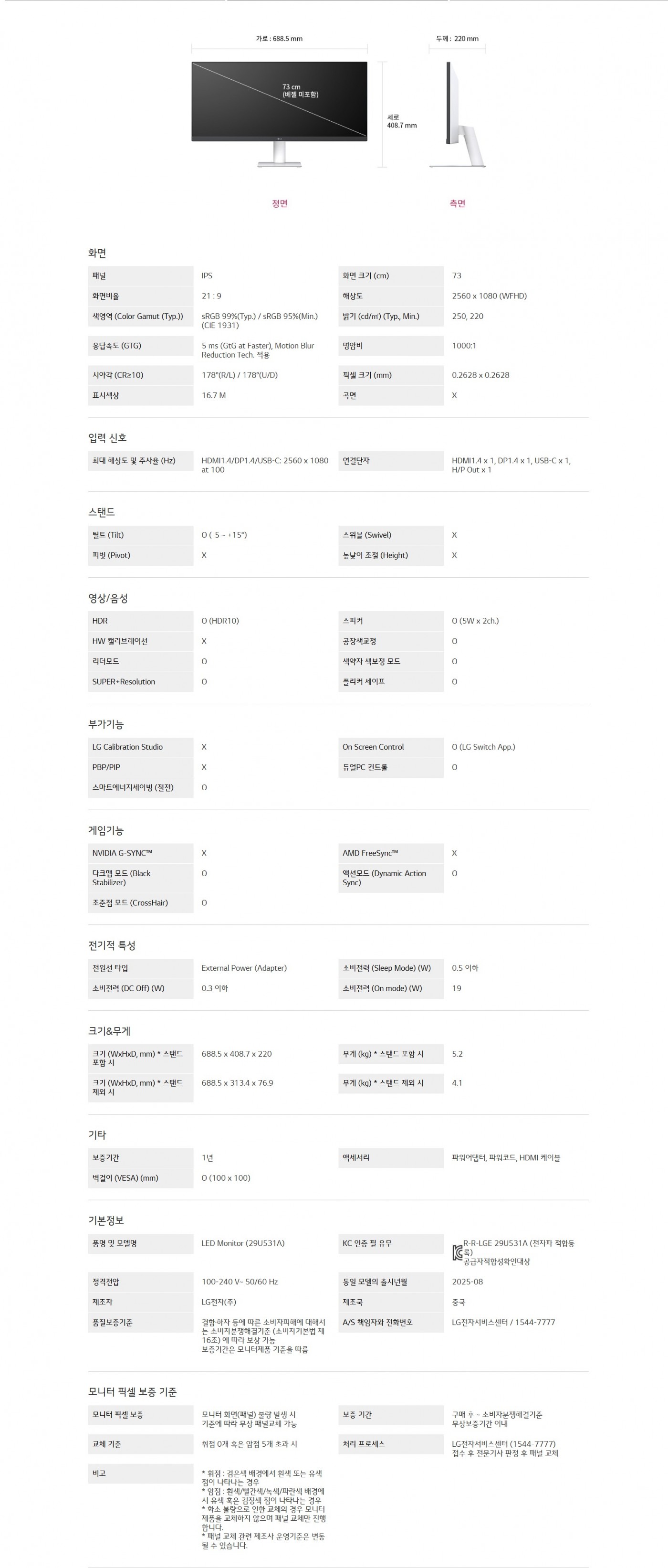 73cm WFHD IPS 디스플레이