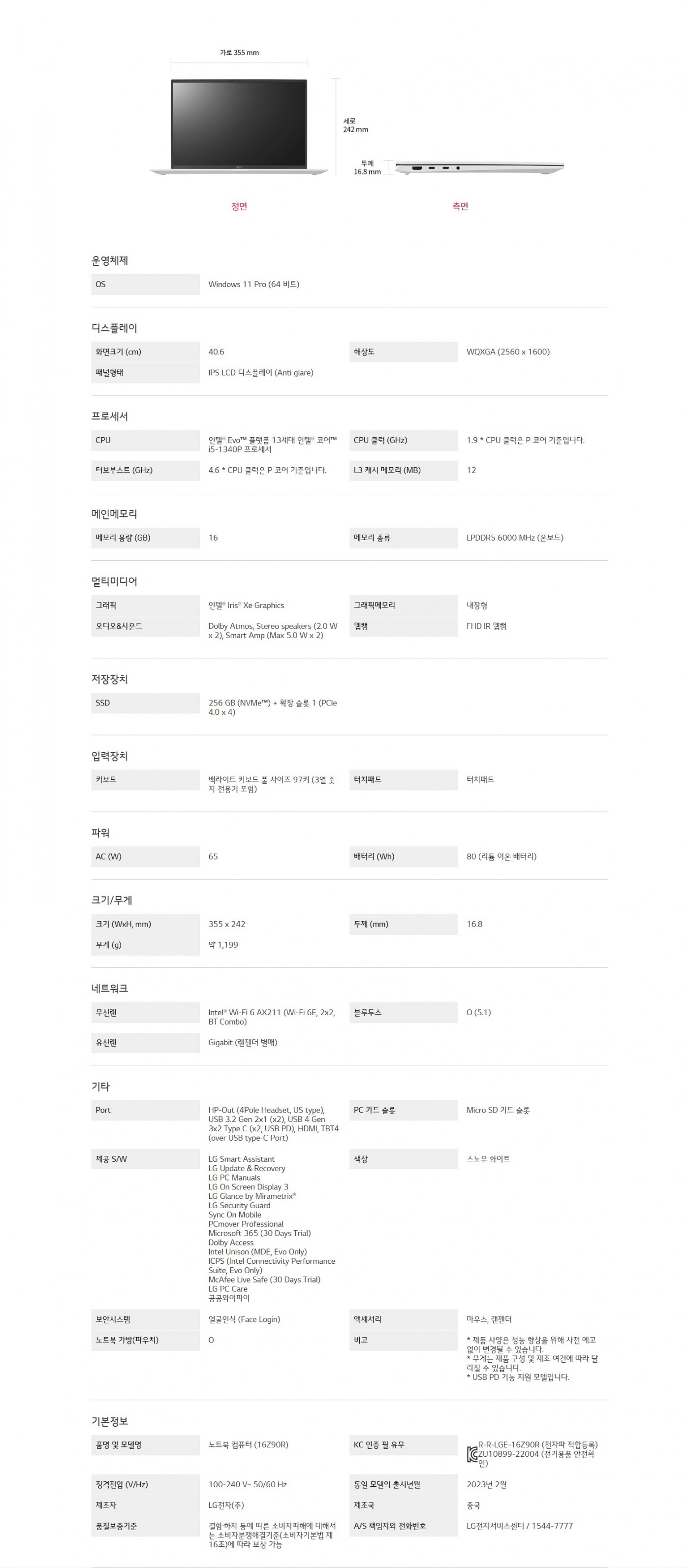 OS:WINDOWS 11 PRO (64 비트) CPU:인텔® EVO™ 플랫폼 13세대 인텔® 코어™ I5-1340P 프로세서 SSD:256 GB (NVME™) + 확장 슬롯