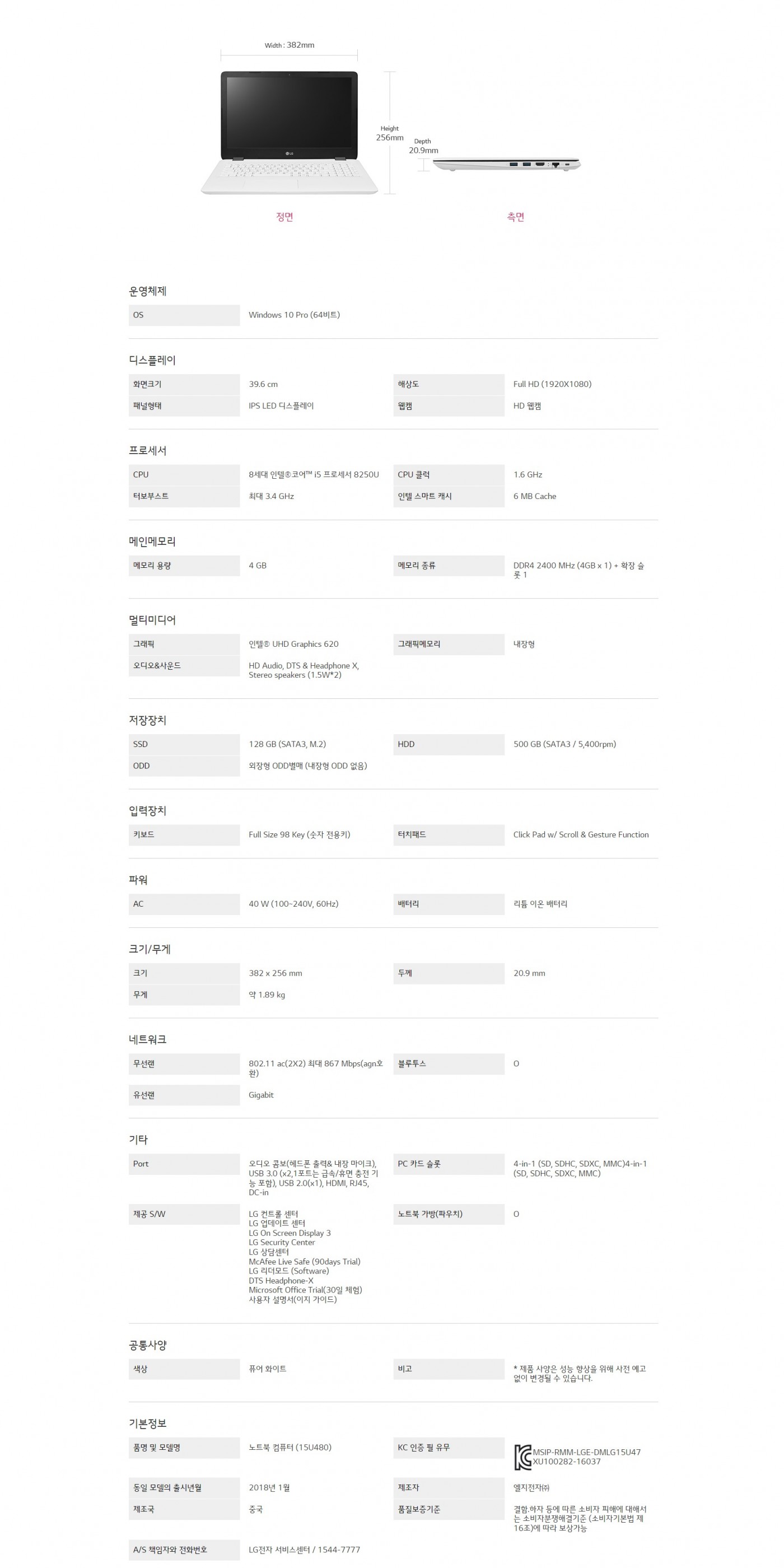 PC/모니터 [단종]LG 울트라PC 15U480 15U480-GR50ML