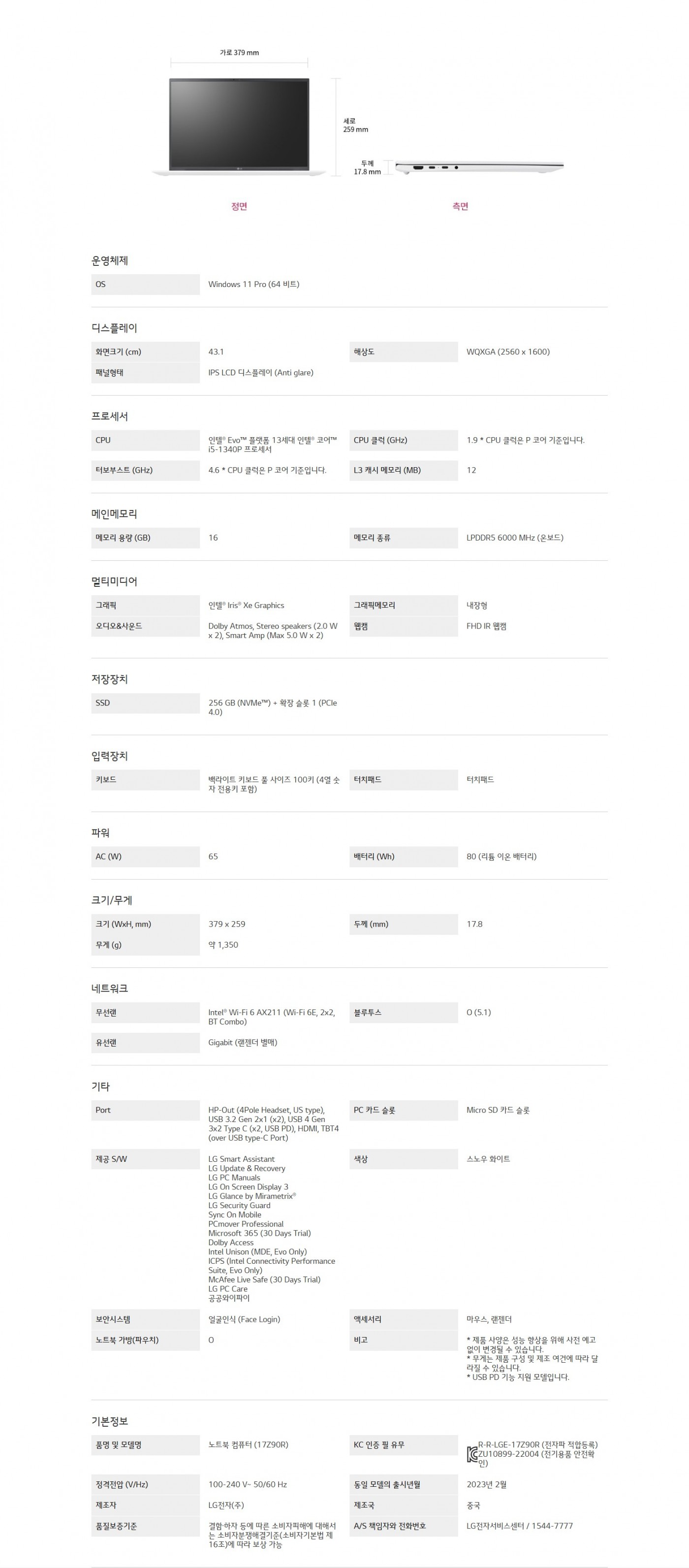 OS:WINDOWS 11 PRO (64 비트) CPU:인텔® EVO™ 플랫폼 13세대 인텔® 코어™ I5-1340P 프로세서 SSD:256 GB (NVME™) + 확장 슬롯