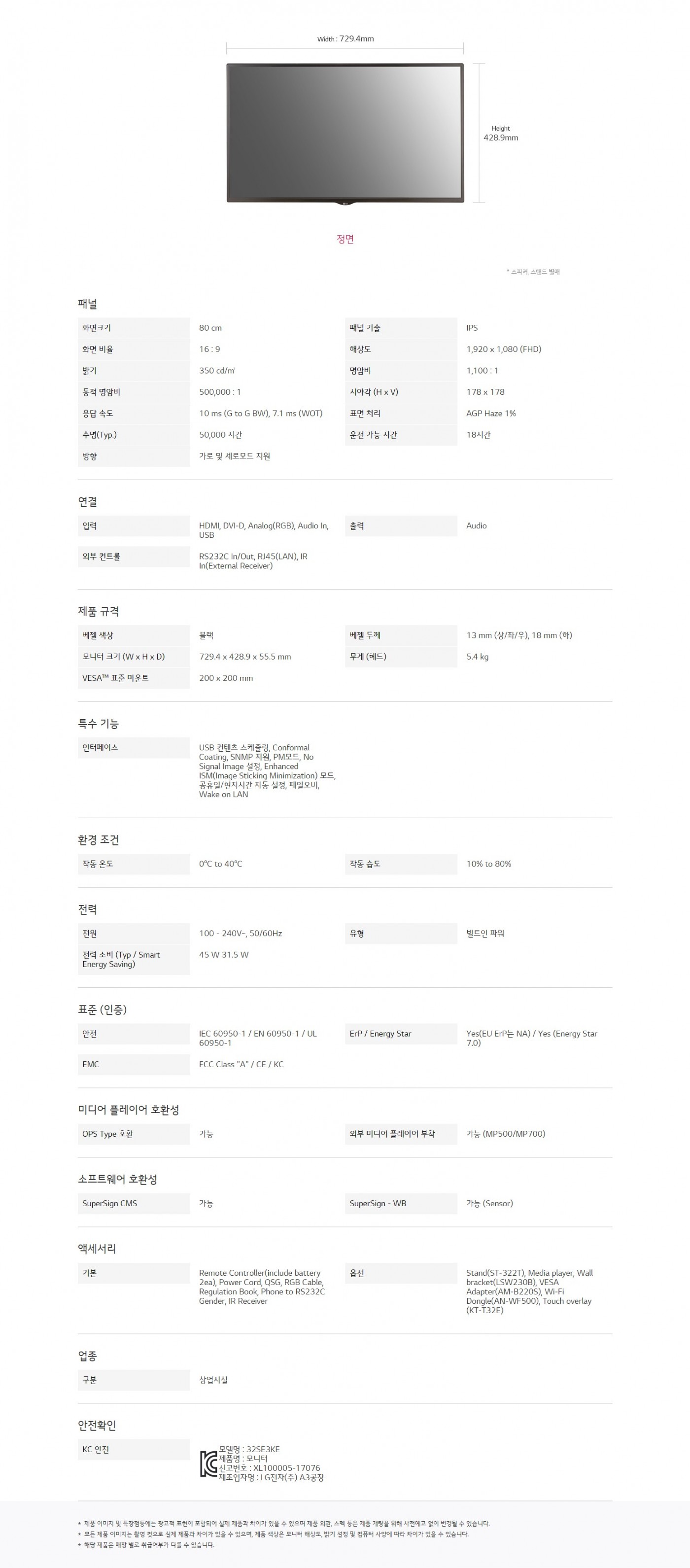 베젤 두께 : 13 mm (상/좌/우), 18 mm (하)