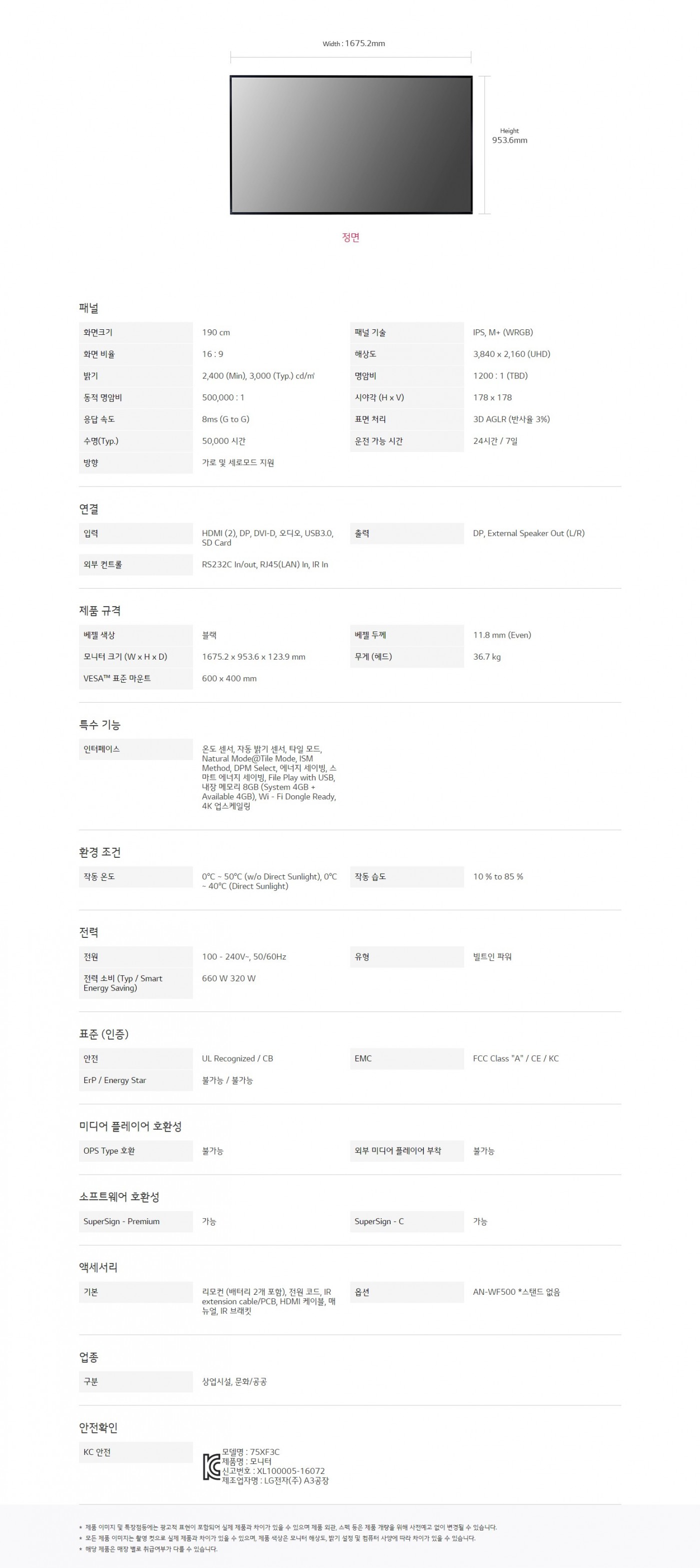 밝기 : 2,400 (Min), 3,000 (Typ.) cd/㎡