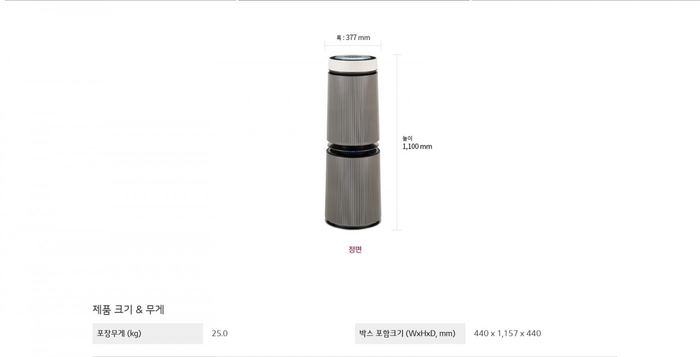 LG 퓨리케어 AI 오브제컬렉션 360˚ 공기청정기 (M 필터)