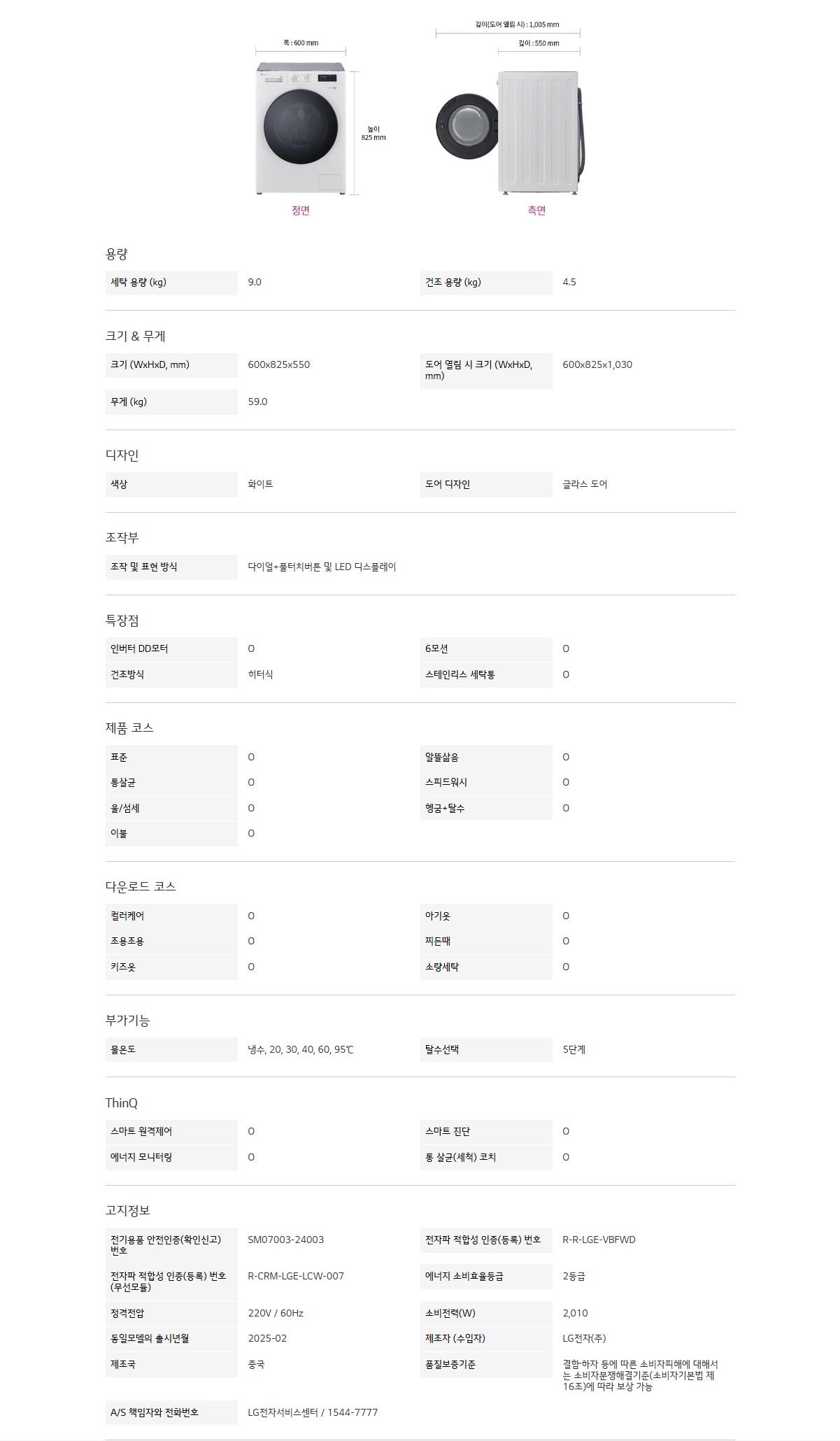 세탁 용량 (kg) : 9.0