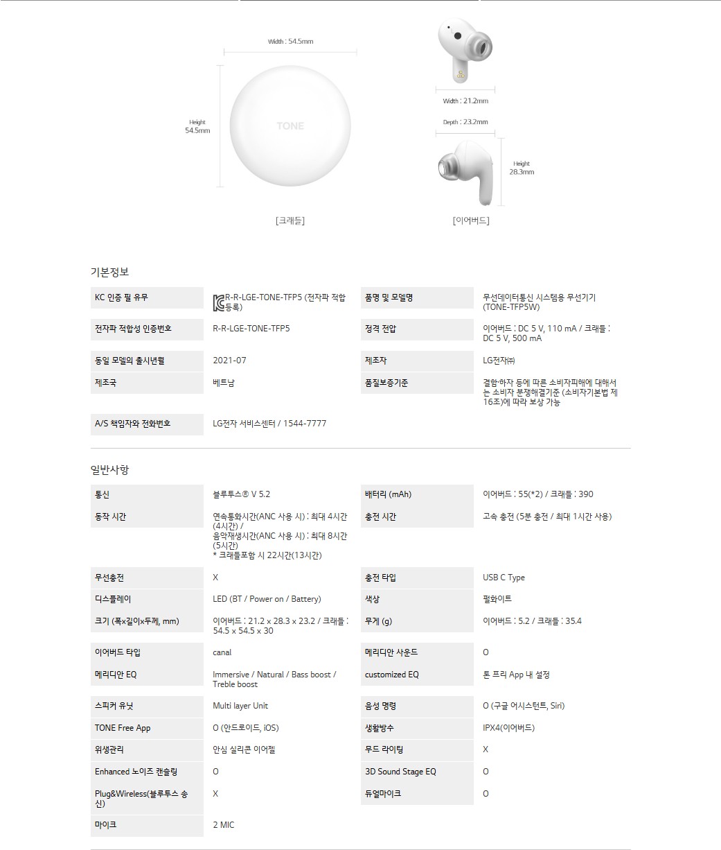 충전 시간 : 고속 충전 (5분 충전 / 최대 1시간 사용)